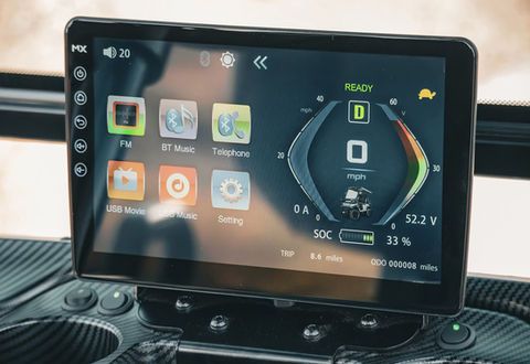 Luxurious Carbon Fiber Style Dash, Locking Glove Compartments, 10.1” Digital Display Multimedia Touch Screen with IP67 Rating, EcoXGear 28” Bluetooth Sound Bar, Bluetooth, Phone, Radio, Music, Back-up Camera, Forward/Neutral/Reverse Switch, USB and 12V Plugs, Multiple Cup Holders, USB Ports & Pre-Wired 12v Switches, Digital Gauges, Key Switch