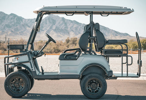 The street-ready Epic E40L golf cart comes fully equipped with premium features to enhance every excursion. Experience elevated comfort and style with spacious seating for four, street tires, and a lifted design that ensures smooth navigation on any terrain. The Epic E40L is equipped with all the essentials for a luxurious ride, including advanced suspension, and an all new sleek digital dashboard. The Epic E40L golf cart delivers unparalleled performance and sophistication. Get ready to elevate your driving experience with this ultimate luxury electric vehicle.